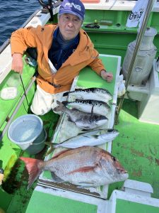 本日のマダイ船は潮流れず苦戦