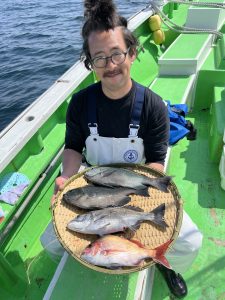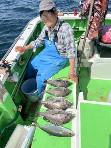 本日のマダイ船は朝からマダイ釣れて幸先いいスタートでした。